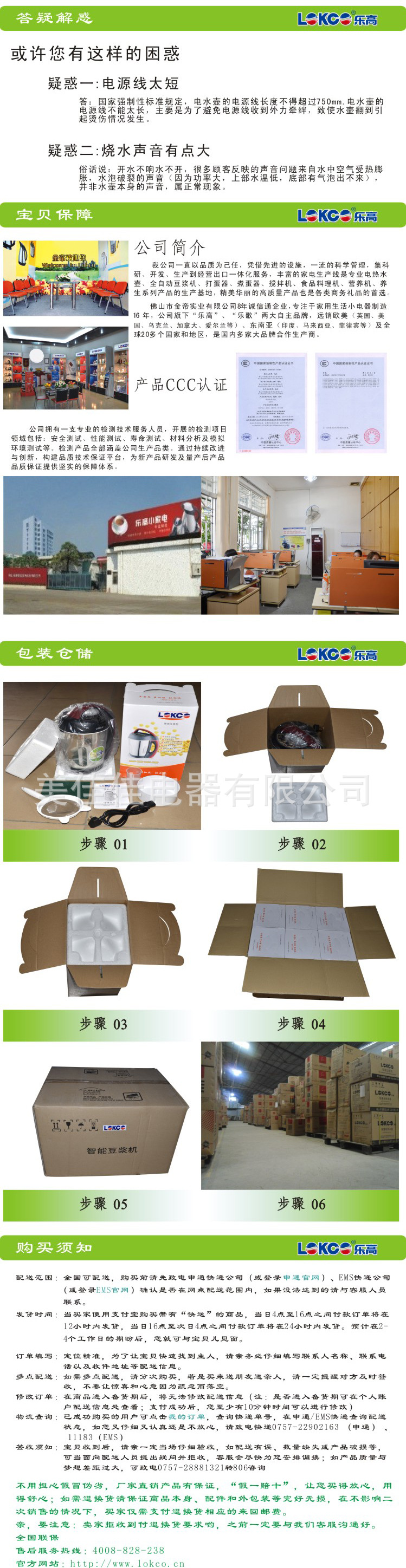 1、優(yōu)質(zhì)溫控器,保證100%沸騰,食品級(jí)塑料符合國(guó)家衛(wèi)生標(biāo)準(zhǔn);