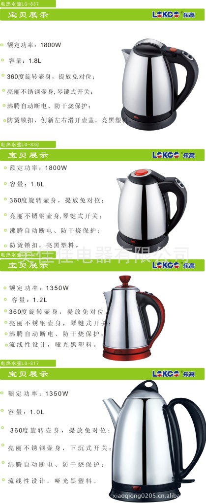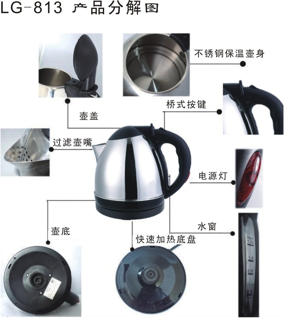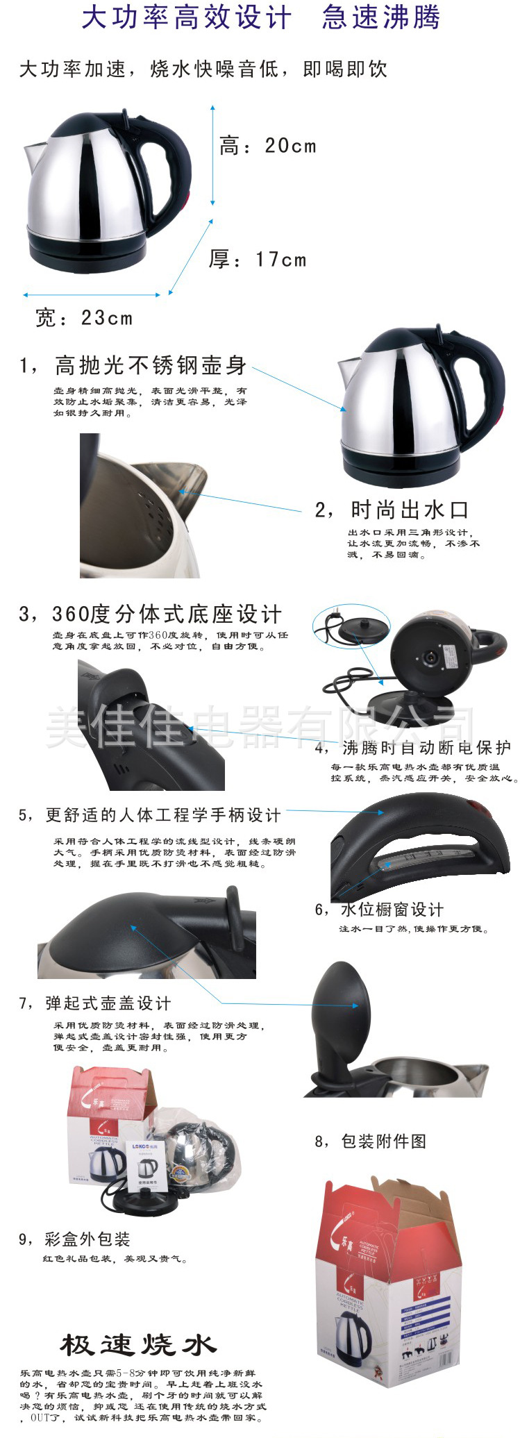 不銹鋼360度旋轉(zhuǎn)機(jī)身/自動(dòng)斷電/防干燒/自彈式壺蓋/