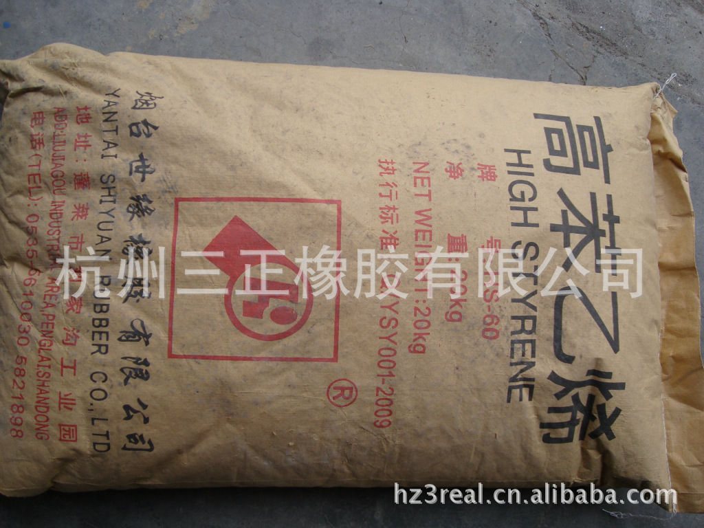 高苯乙烯是丁苯橡膠的一個(gè)特殊品種,由丁二烯和炳乙烯共聚而成,經(jīng)凝聚洗滌,擠壓脫水,干燥制得產(chǎn)品。本產(chǎn)品為易相互粘結(jié)的白色片狀橡膠顆粒,無(wú)毒,無(wú)臭,可燃,具有雜質(zhì)含量低,質(zhì)量穩(wěn)定等特點(diǎn),由于其組份中苯乙烯含量較高,使其制品的耐磨性能,耐老化性能,硬度,剛性,撕裂強(qiáng)度和定伸強(qiáng)度大幅度提高。