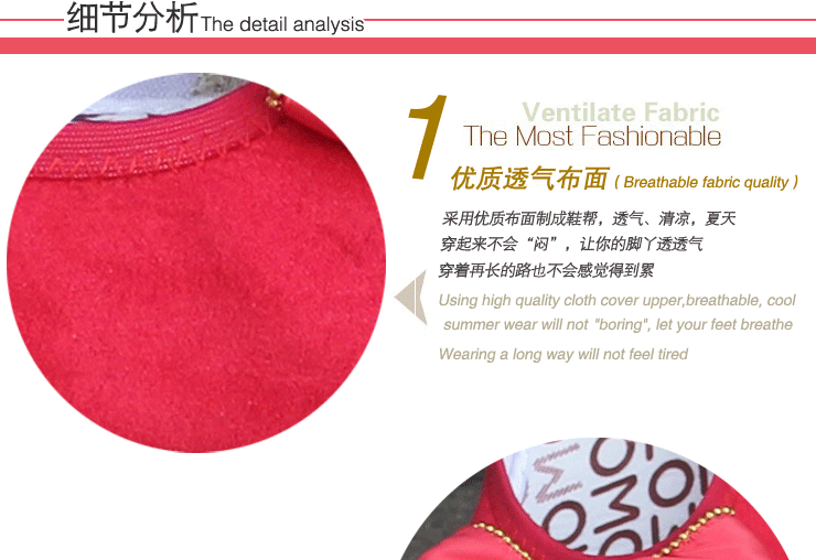 此款軟底涼鞋采用了優(yōu)質(zhì)棉布,手工縫制而成!松緊口,方便穿著!此款鞋底以及欣清的其他鞋底均為100%實(shí)心底,堪稱業(yè)界良心