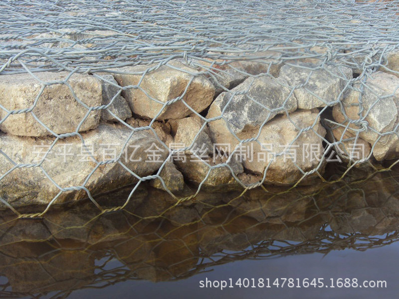 五擰石籠網(wǎng)由高鍍鋅鐵線被覆PVC機(jī)編扭繞成,再予連續(xù)性聯(lián)結(jié)成一柔韌性結(jié)構(gòu)體,并在指定位置安放、裝填石料并錨接穩(wěn)妥五擰石籠網(wǎng)采用機(jī)械編織可節(jié)省大量工時(shí),組立簡(jiǎn)單迅速。本工法適用于高流速、沖蝕嚴(yán)重,岸坡滲水多之緩河岸。五擰石籠網(wǎng)屬柔性結(jié)構(gòu),對(duì)于不均勻沉陷自我調(diào)整性佳。岸面多孔性,石材間之縫隙利于動(dòng)物棲息,植物生長(zhǎng),綠化成為生態(tài)毯。既然化符合生態(tài)的考量及安全的要求。