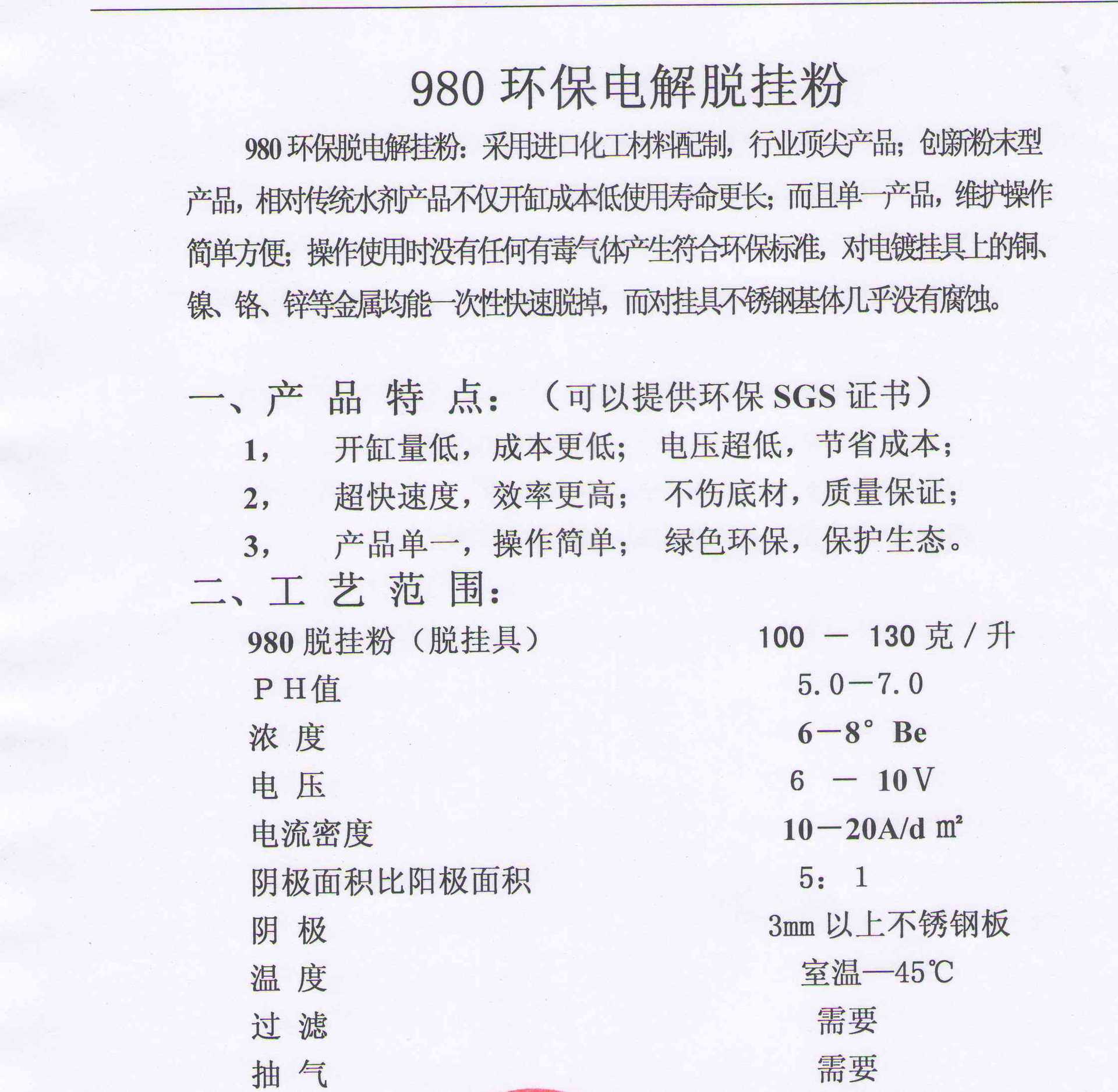 6、本產(chǎn)品是一種連續(xù)性的退鍍產(chǎn)品不需要經(jīng)常更換,只需要根據(jù)本廠每天退鍍掛具量來補(bǔ)充消耗即可。