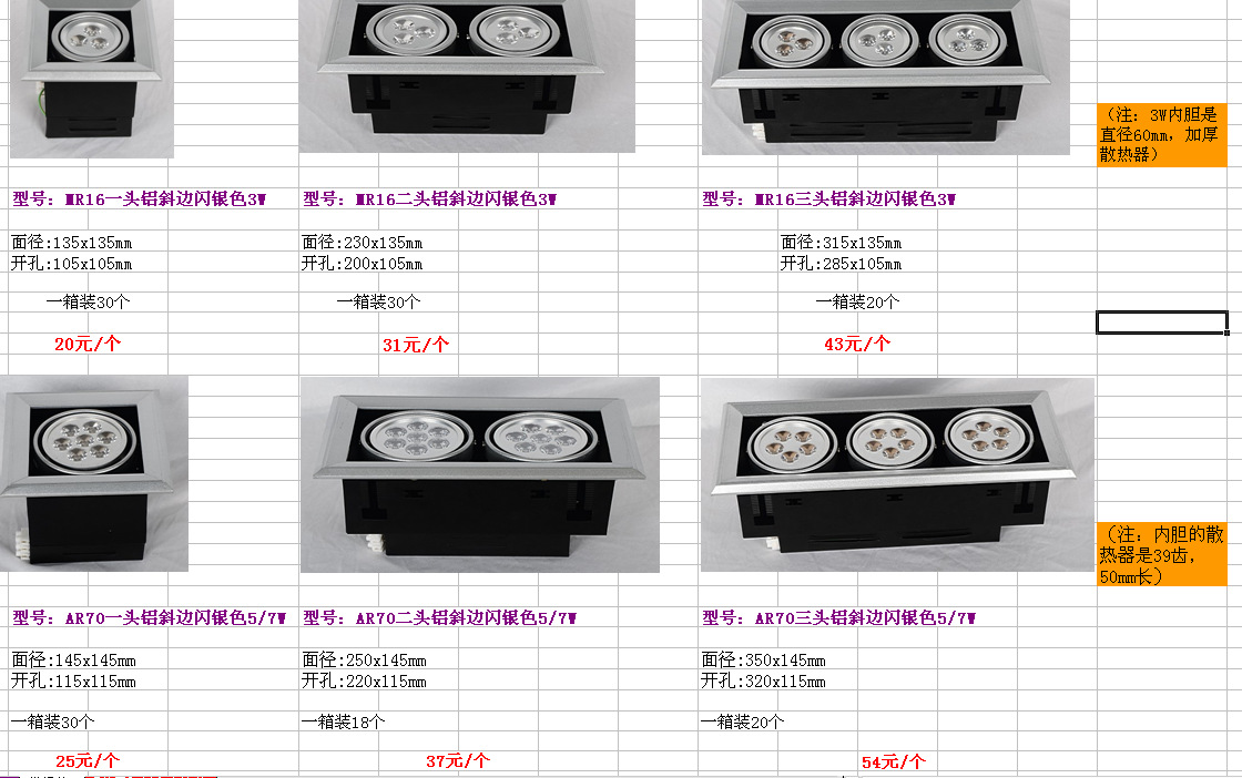 COB:20W-25W(反光杯口徑:23mm,反光角度:24度,發(fā)光面:19或23mm