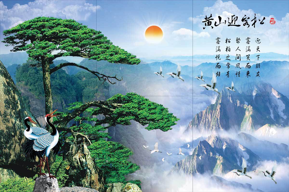 特價(jià) 商用 背景墻磚 藝術(shù)瓷磚 瓷磚背景墻 彩雕背景畫(huà) 黃山迎客單價(jià):40.00