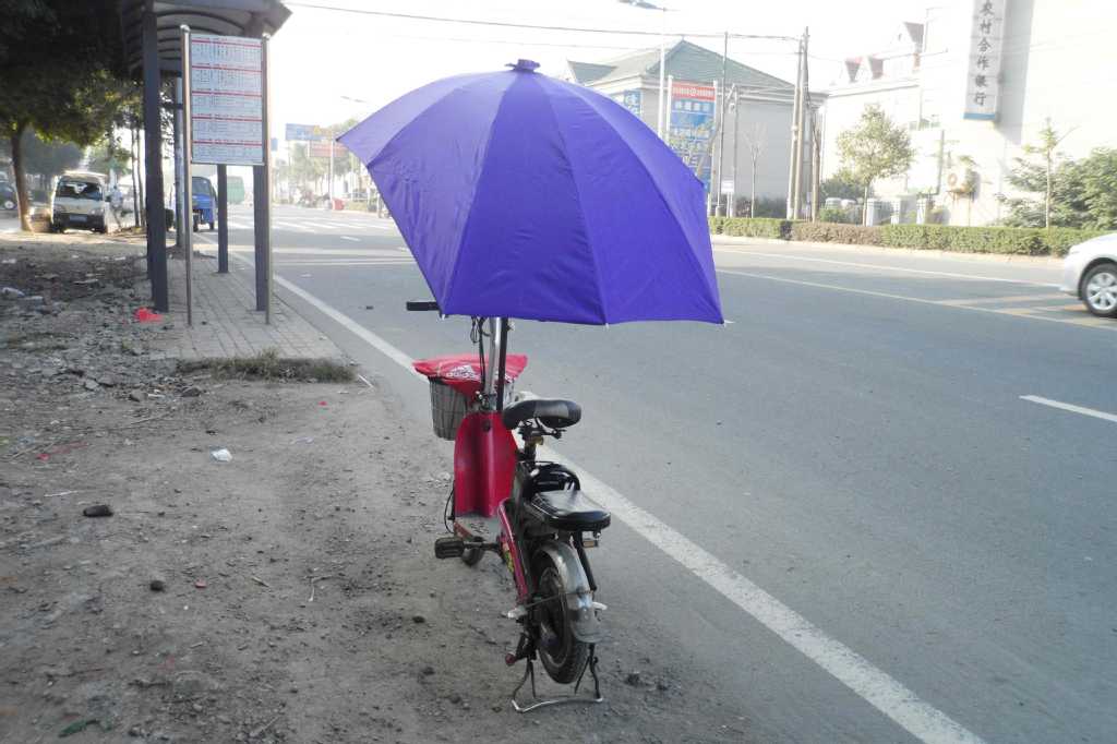 本產(chǎn)品能遮陽(yáng)避雨,是外出的好伴侶:抗風(fēng)、安裝快速、攜帶方便。不但為騎車(chē)人充分地遮擋雨雪或陽(yáng)光直曬,還能為露天停放的摩托車(chē)、腳踏車(chē)充當(dāng)一種遮蓬:可以根據(jù)需要隨時(shí)方便快速地安裝或折疊存放。該傘克服了現(xiàn)有技術(shù)存在的遇風(fēng)擺動(dòng)甚至于翻轉(zhuǎn)的不足,能有效地減少在行駛過(guò)程中的空氣阻力,使您能夠安全行駛。內(nèi)鍍銀膠,直接阻擋紫外線(xiàn),讓你度過(guò)清涼一夏。