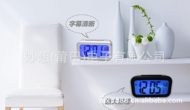 時尚簡約的外觀設(shè)計,獨特的藍色背景夜燈,萬年歷,24小時/12小時轉(zhuǎn)換