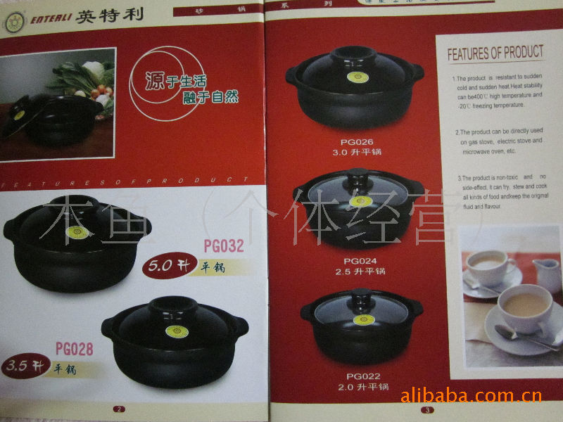 “英特利”耐砂鍋,產品系列繁多,產品經質量鑒定檢測合格。達到急熱400℃,急冷20℃無裂紋,熱穩(wěn)定好、秞面雅潔、耐酸堿、不含鉛的特點;能保持食品的美味。