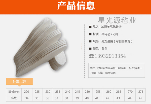 名稱:優(yōu)質(zhì)纖維+羊絨毛氈鞋墊【纖維羊絨鞋墊】