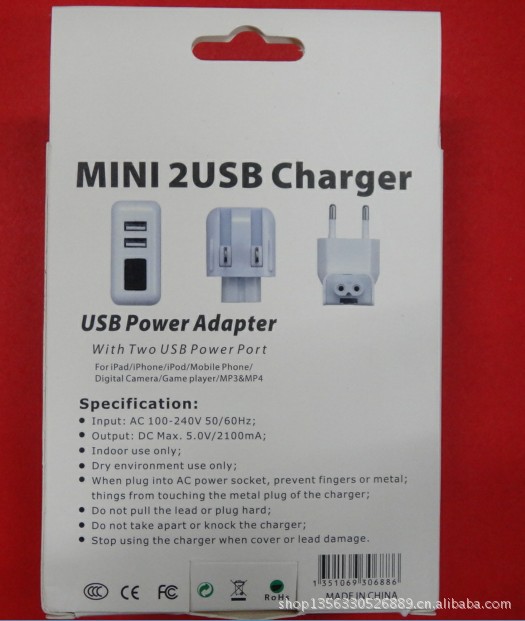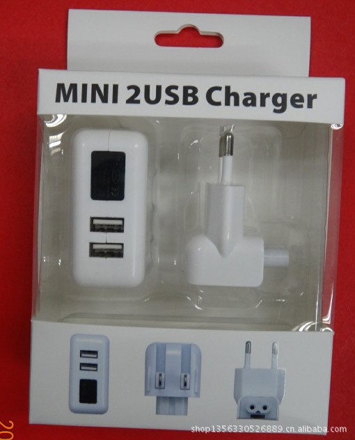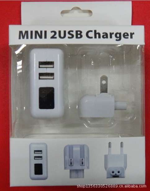 MINI 雙USB充電器 iPhone5/4/3GS/iPad4/3 充電器 足2A 配件批發(fā)