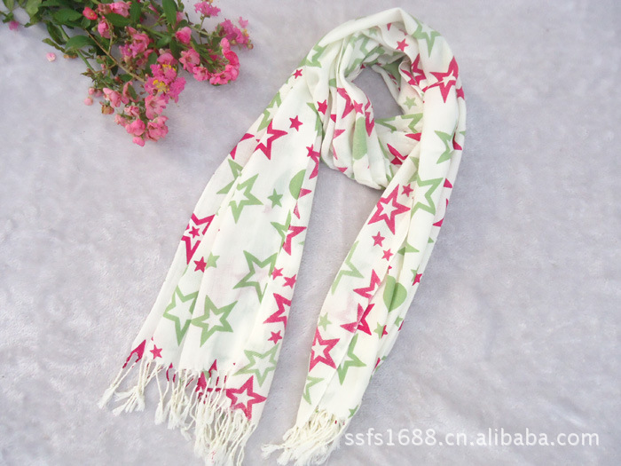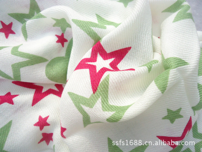 三盛 亮麗星星五彩斑斕 女士印花圍巾 時尚款披肩