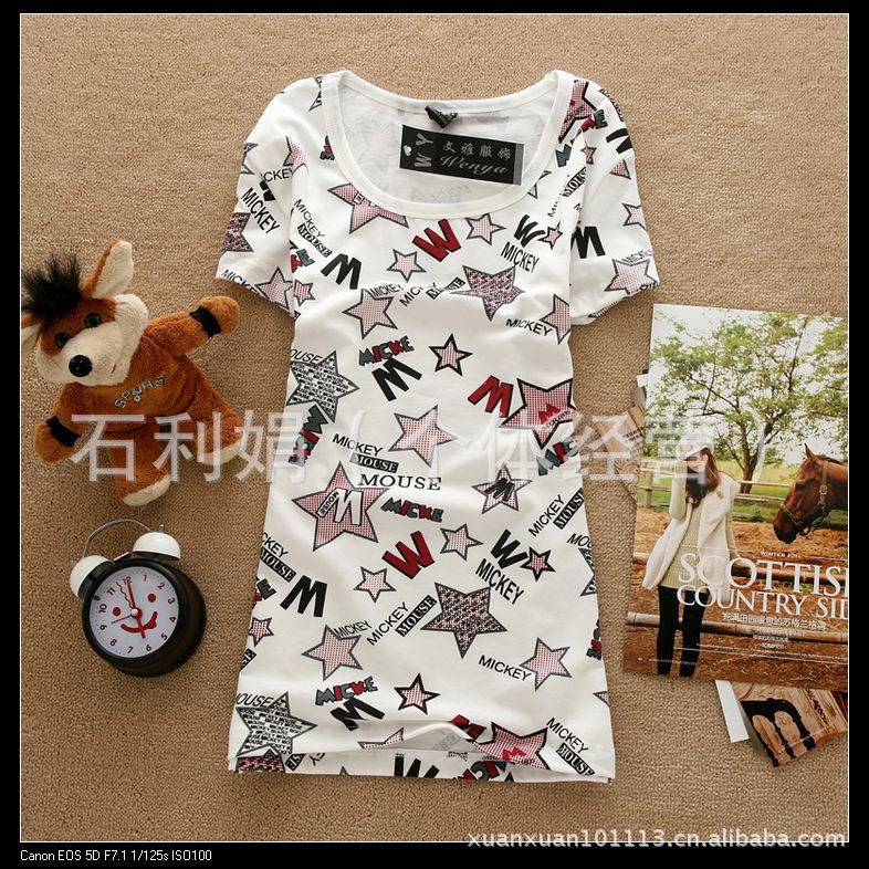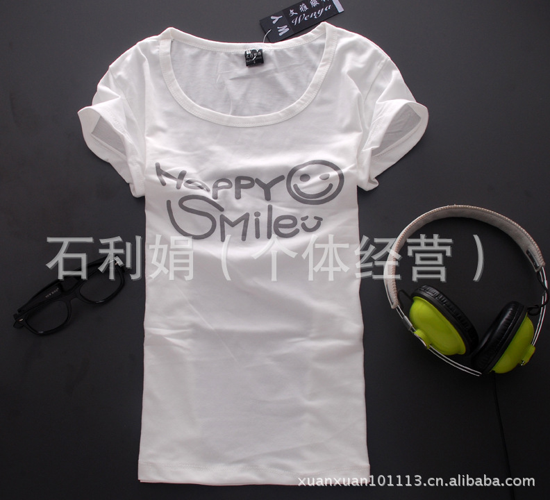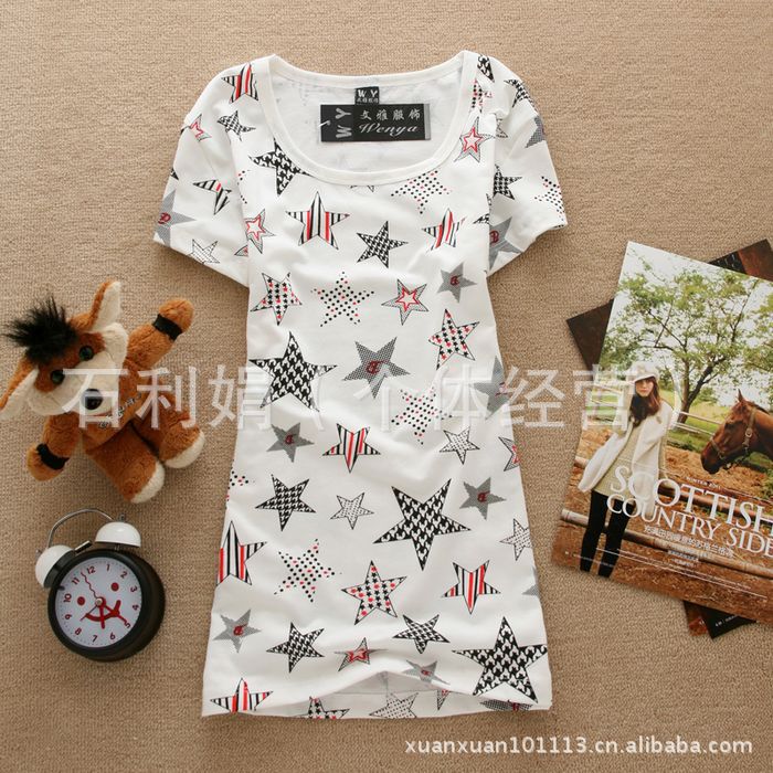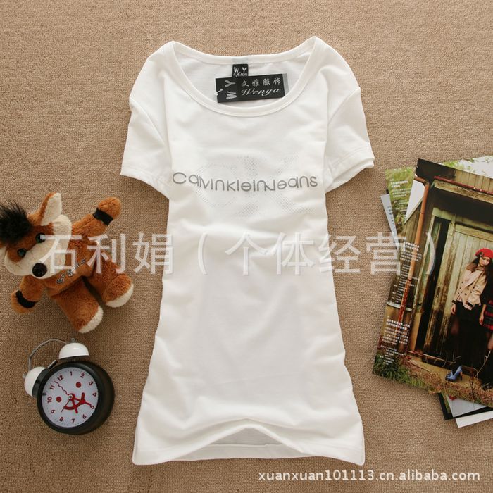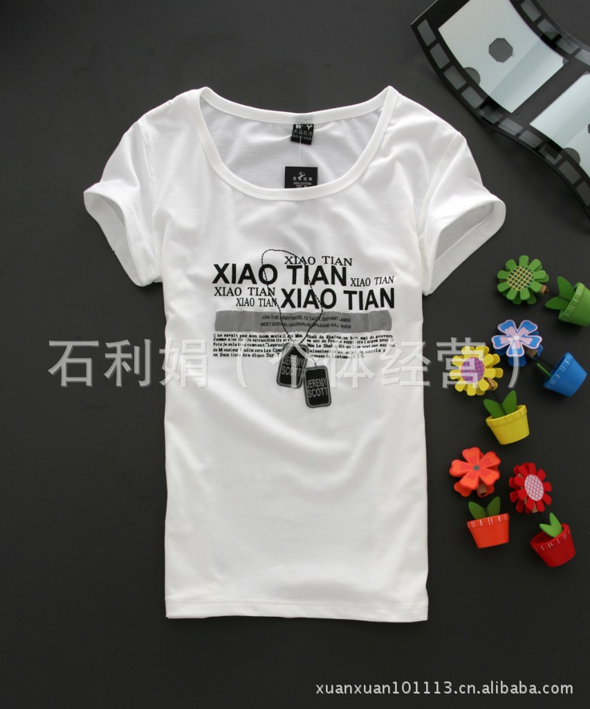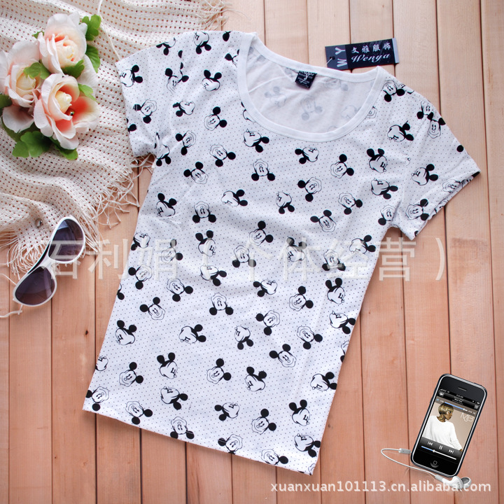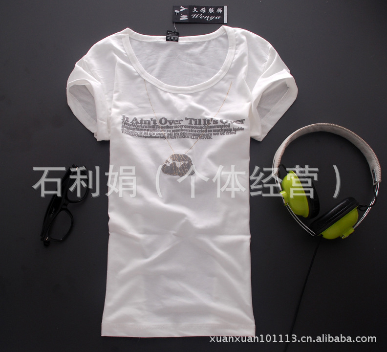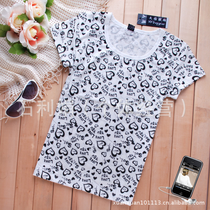 E系列瑞麗時尚女式T恤批發(fā) 女裝短袖T恤衫 純棉勾花手搖女T恤