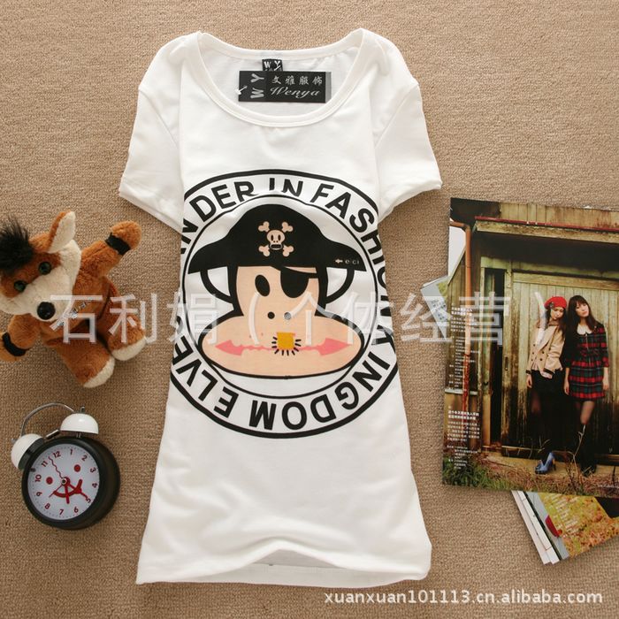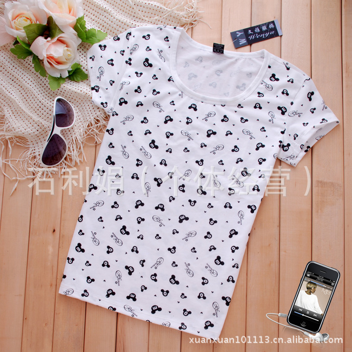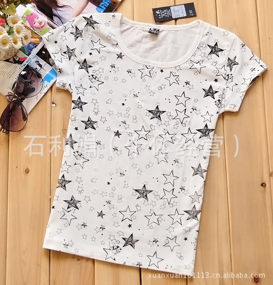 工藝:全面時尚印花,領(lǐng)口下擺均顯精細做工,韓版收腰設(shè)計,商標嘜頭均采用香港、臺灣等地流行做法(請注意哦,吊牌與嘜頭均打在衣服的右下側(cè))。