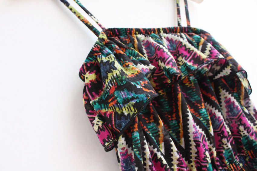 胸圍的地方是荷葉邊款式,會顯得更豐滿呢,胸下圍是松緊設(shè)計,豐滿一點的MM也可大膽選擇