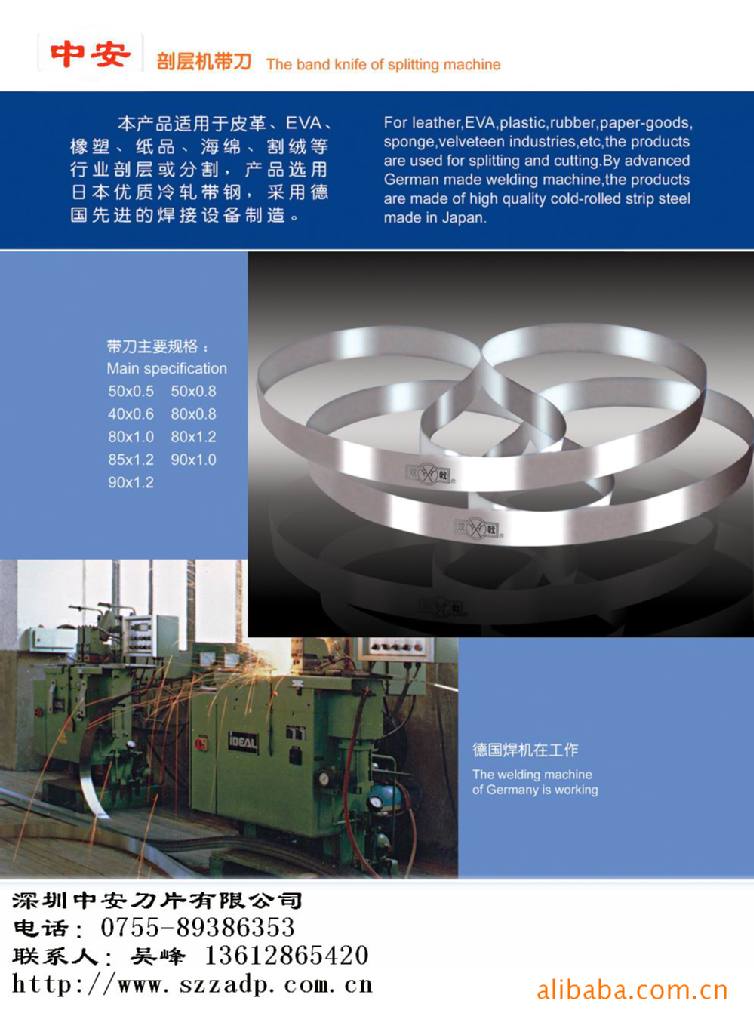 3.皮具,鞋業(yè),海綿刀類:大鏟刀,片皮刀,削皮刀,鞋底刀具,碗刀,分條刀,捆條刀,修邊刀,海綿刀,EVA剖臺刀,運剪機刀帶,直切機刀帶,圓盤機刀帶,家私帶鋸,鐵(銅)心膠輪,白(紅)砂輪片及片皮機配件;