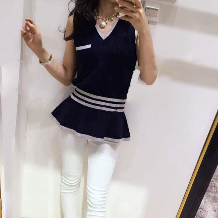 小香走秀同款,白邊V領(lǐng)束腰針織連衣裙。