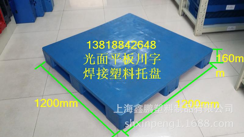 1212平板川字焊接塑料托盤,尺寸:1200*1200*160mm,材質(zhì):PP(抗沖擊聚丙烯),無毒、無味、耐酸堿(弱酸、弱堿)、耐低溫、易清洗、衛(wèi)生、干凈、環(huán)保、可回收!自重:22.2kg±3%,顏色:藍色為主,其余顏色數(shù)量超過500片可以定做!此托盤屬于四面進叉型,可以配合手動液壓車和電動叉車使用;托盤面部可以加6根鋼管,底部可以加4根鋼管,加完鋼管后,承載會相應(yīng)的增加,不同的承載可以加不同方案的鋼管!不加鋼管的時候承載分別為;動載1.2噸,靜載4噸;加完鋼管后承載分別為:動載2噸,靜載6噸,貨架1.2噸。托盤可以絲網(wǎng)印刷公司logo或者公司部門,以便于起到宣傳和分類管理的效果!
