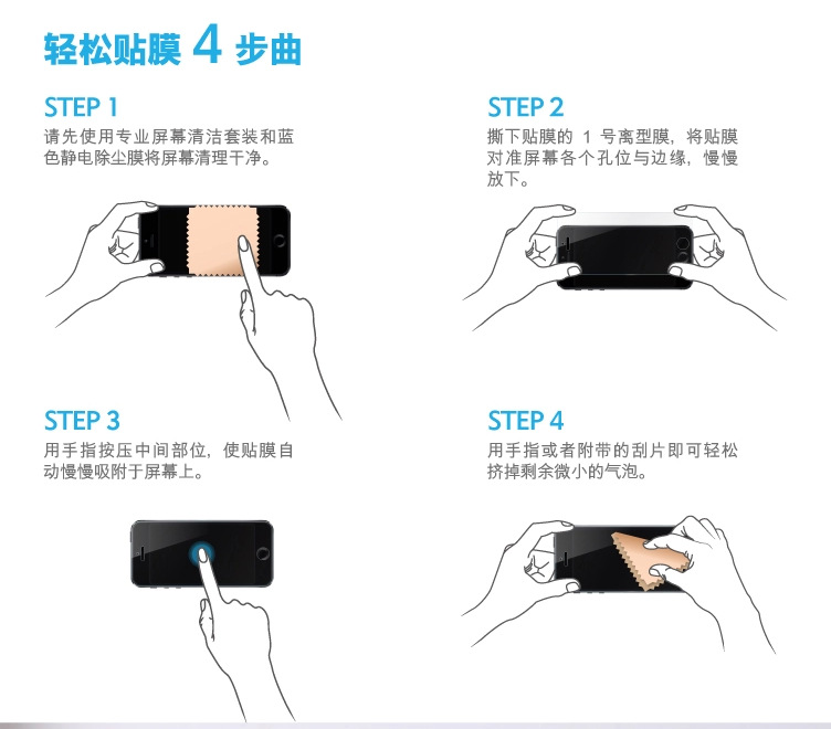 3、防指紋:表面高分子防指紋處理,指紋抑制較普通保護(hù)膜大大提高(注:目前技術(shù)條件下,100%防指紋是不可能的,kmoso鋼化玻璃高清膜可以限度提高防指紋效果);