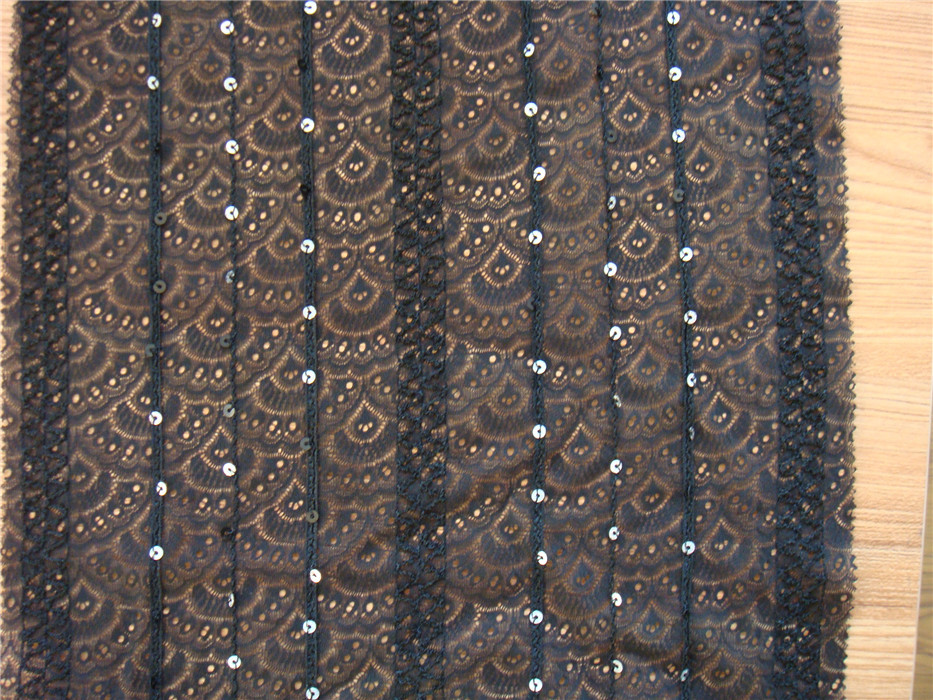 Type/品名:珠片(車花)繡蕾絲 Ingredient/成分:滌綸80% 錦綸20%