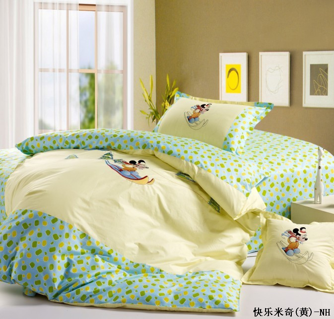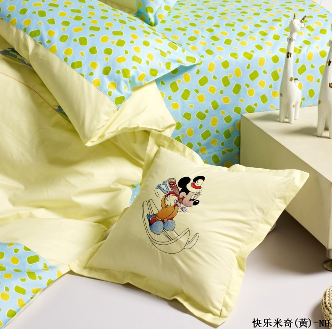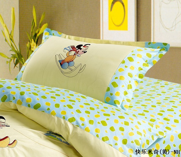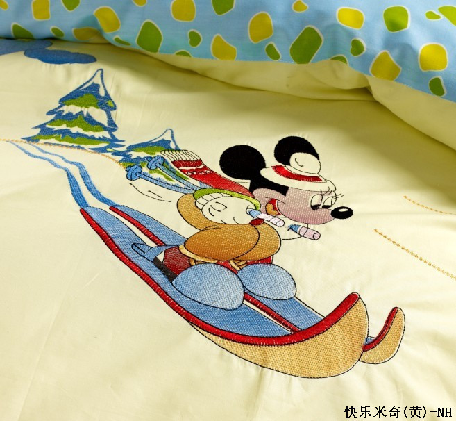 本款產(chǎn)品為全棉兒童卡通印花加繡花四件套,A版平紋加B版斜紋拼接,