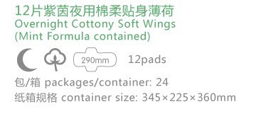 廠家直銷12片紫茵日用棉柔貼身薄荷衛(wèi)生巾,含薄荷配發(fā),清新祛味