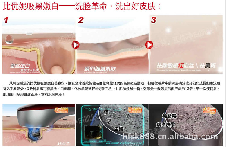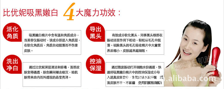 比優(yōu)妮可以讓皮膚恢復(fù)緊質(zhì),細(xì)滑。充滿光澤。釋放輕柔而頻密的微震潔面、按[mo]技術(shù),能更有效迅速打通面部深層毛孔,激活沉淀深層污垢,吸出深層毛孔中的油脂,化妝殘留,及其它深層污垢從而達(dá)到深層潔面的作用