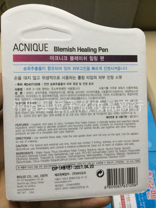 便于攜帶和使用的局部青春痘專用Pen,含有松黃提取物,具有護理青春痘和快速鎮(zhèn)定肌膚的功效。在粉刺或暗瘡上迅速消炎細菌,當您工作或睡覺時。 幫助清除倔強,復發(fā)的暗瘡。ACNIQUE採取自然植物萃取物,杉木花粉萃取物作為一個抗菌成份。其他公司共同地採取限於相當數(shù)量0.3% ~ 0.5%作為化妝用品, 成份的化合物例如 triclosan和柳酸,自然對待粉刺的用品。