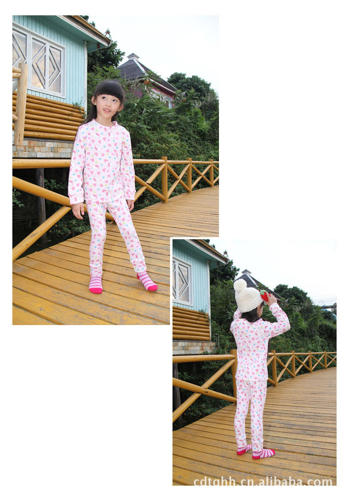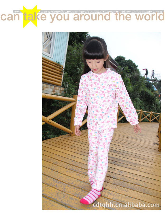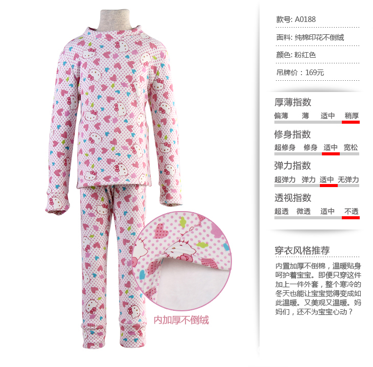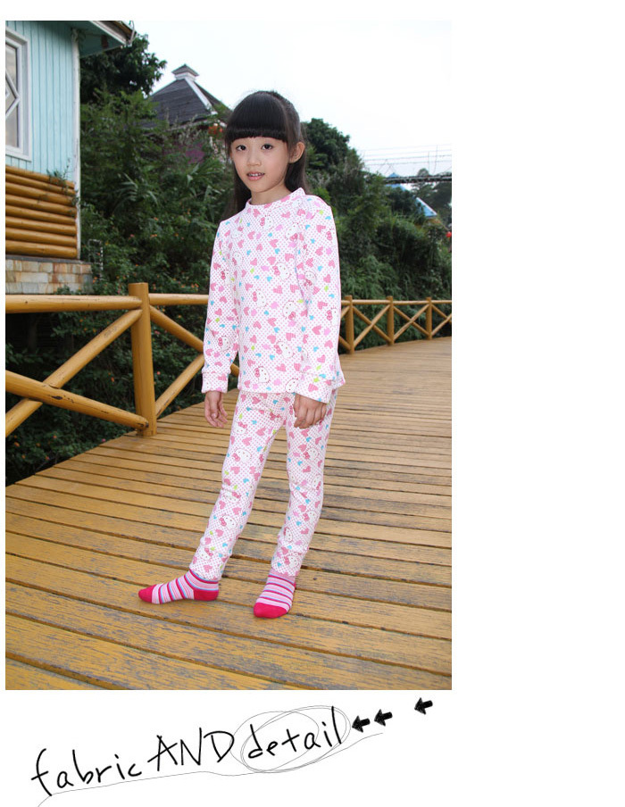 韓版童裝小貓印花女孩保暖純棉不倒絨內(nèi)衣套裝(白色 加厚)