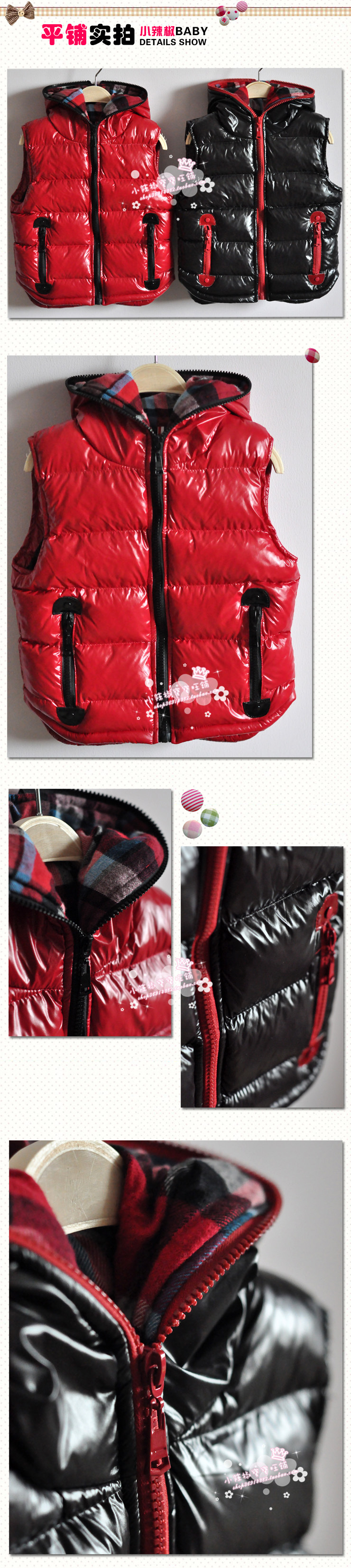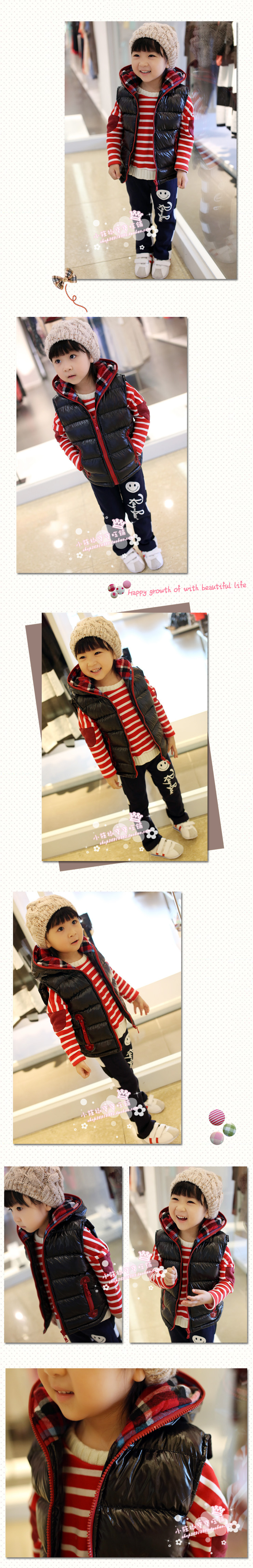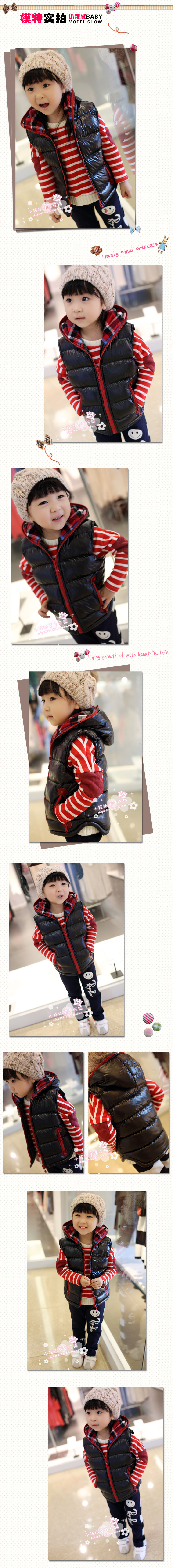 【麥豆童裝】2013春款童裝批發(fā)韓版女童加厚連帽亮皮馬甲棉背心
