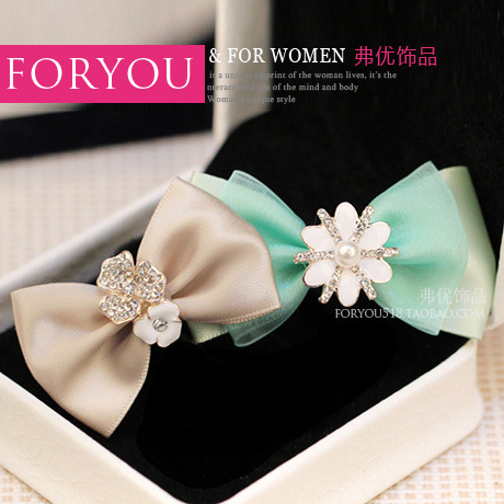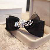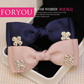 弗優(yōu)飾品 韓版蝴蝶結(jié)發(fā)飾批發(fā) 美版厚緞帶 合金水鉆頭花 廠家直銷¥7.20
