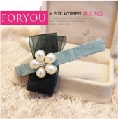 弗優(yōu)飾品 韓版蝴蝶結(jié)邊夾 手工水鉆雪紗劉海夾 廠家直銷¥6.20