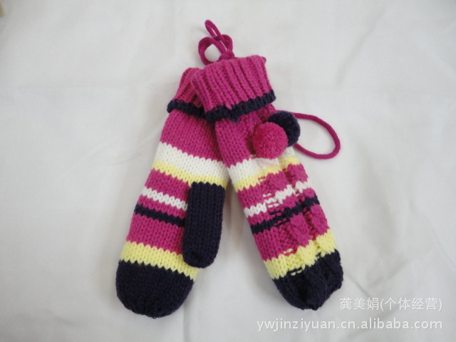 廠家直銷韓版翻口毛球雙層毛線手套 冬季可愛(ài)女生必備