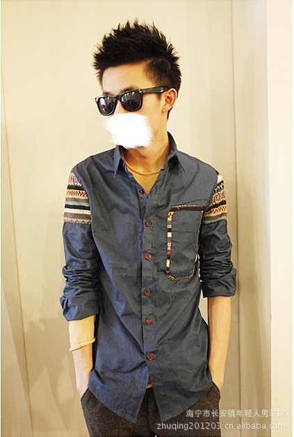 批發(fā)供應(yīng)2012韓版春裝新款 個(gè)性民族風(fēng)長袖襯衫 男修身必備款