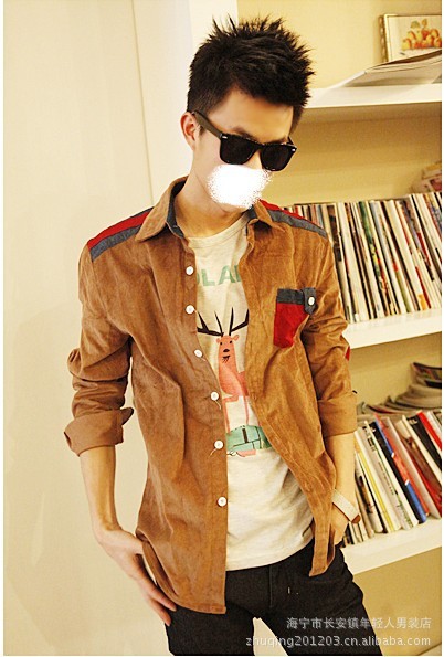 2012韓版春裝新款 燈芯絨面料韓版長(zhǎng)袖襯衫 韓版男士修身襯衫