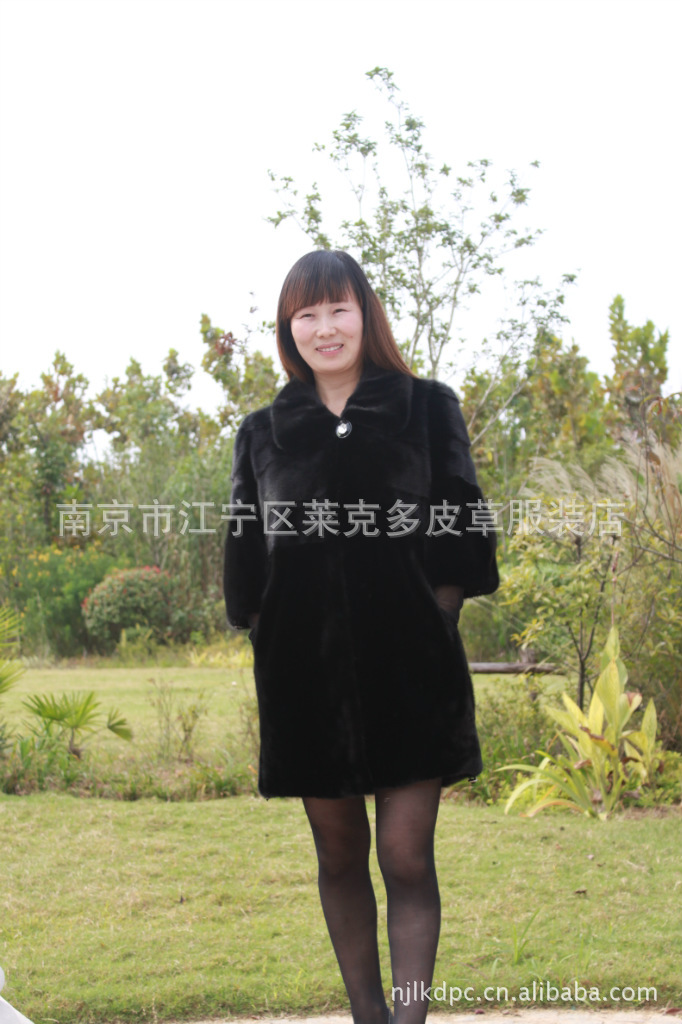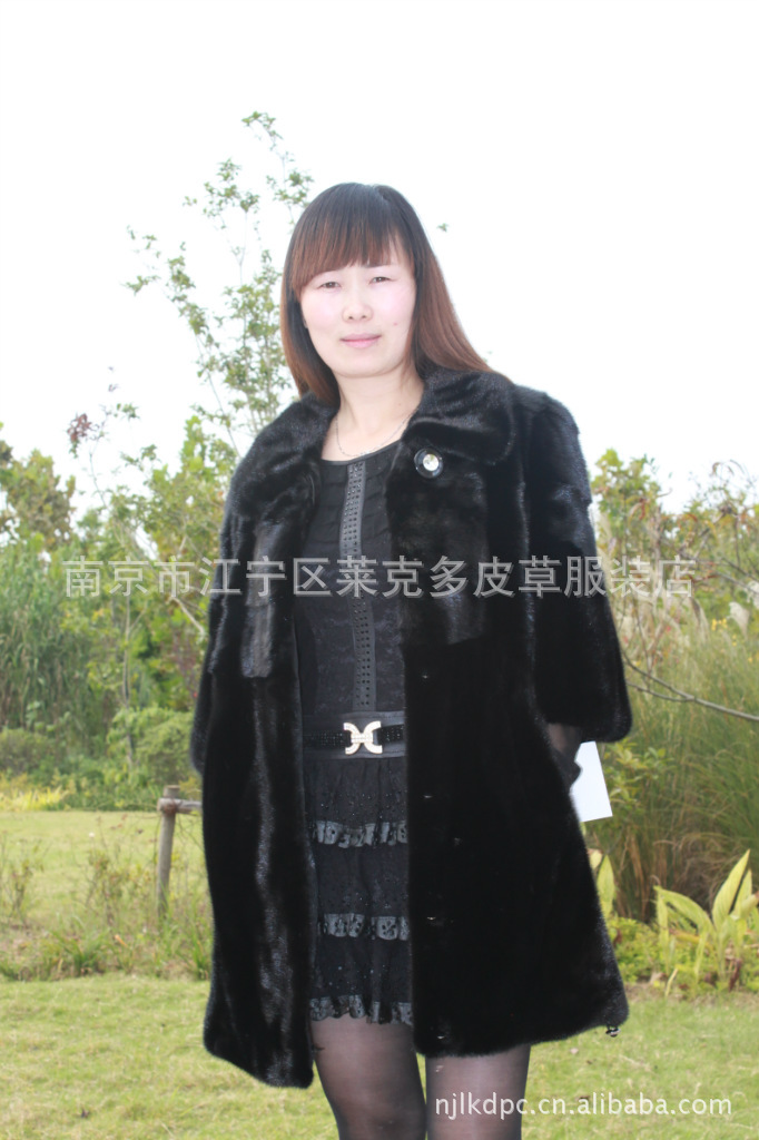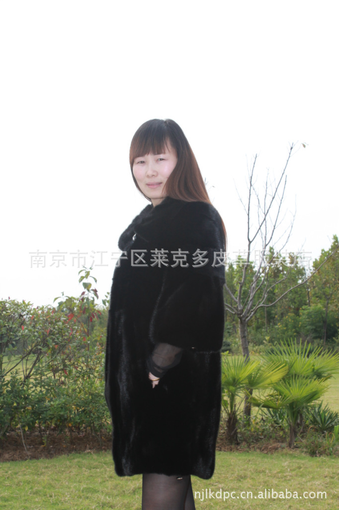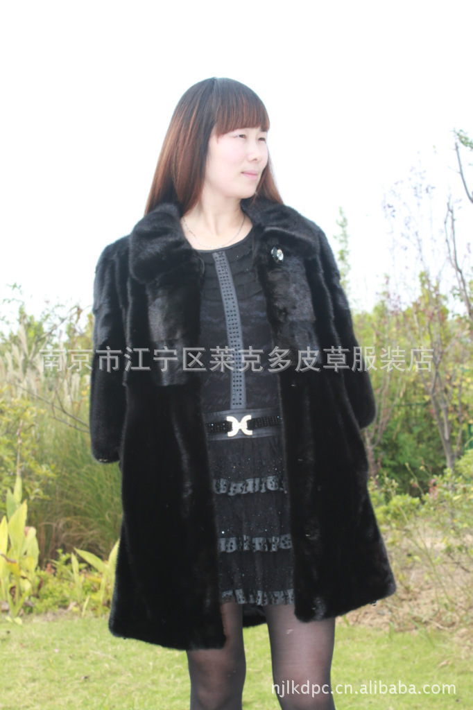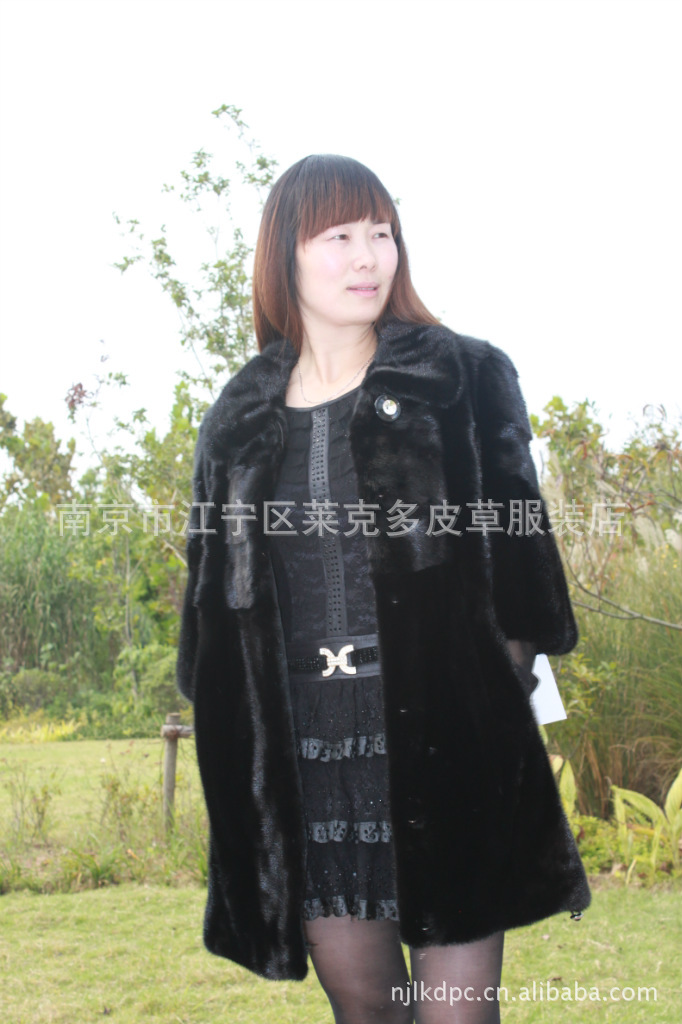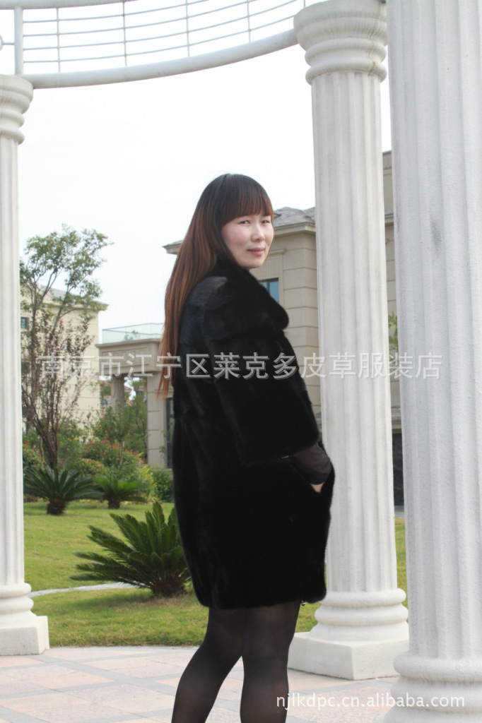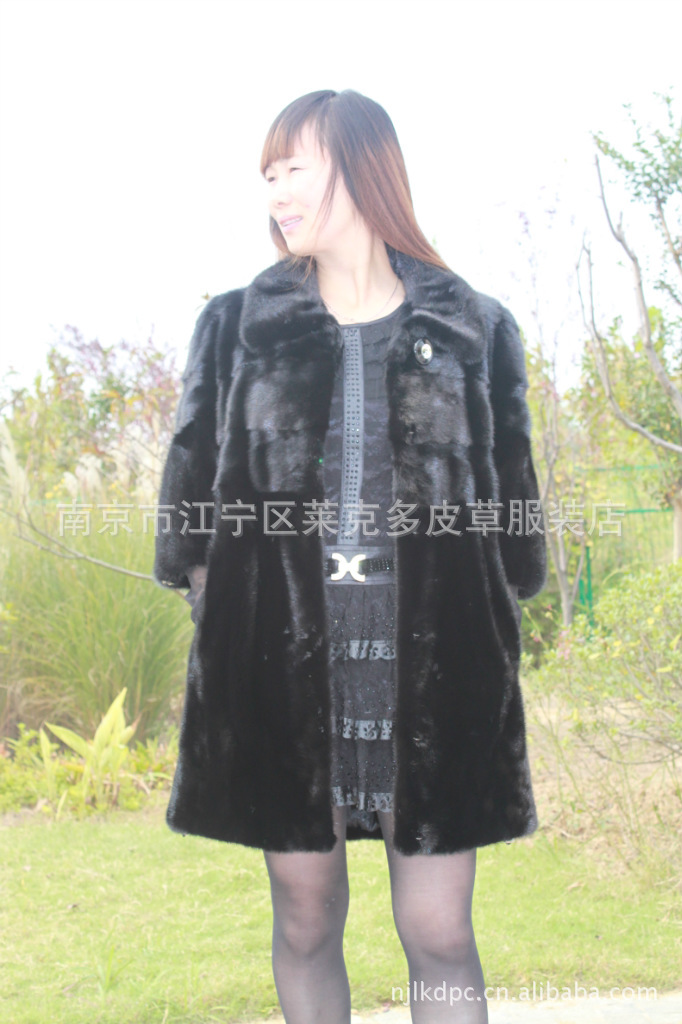 女士長款黑色倒毛橫排韓版水貂/整貂/女士大衣 新潮 016