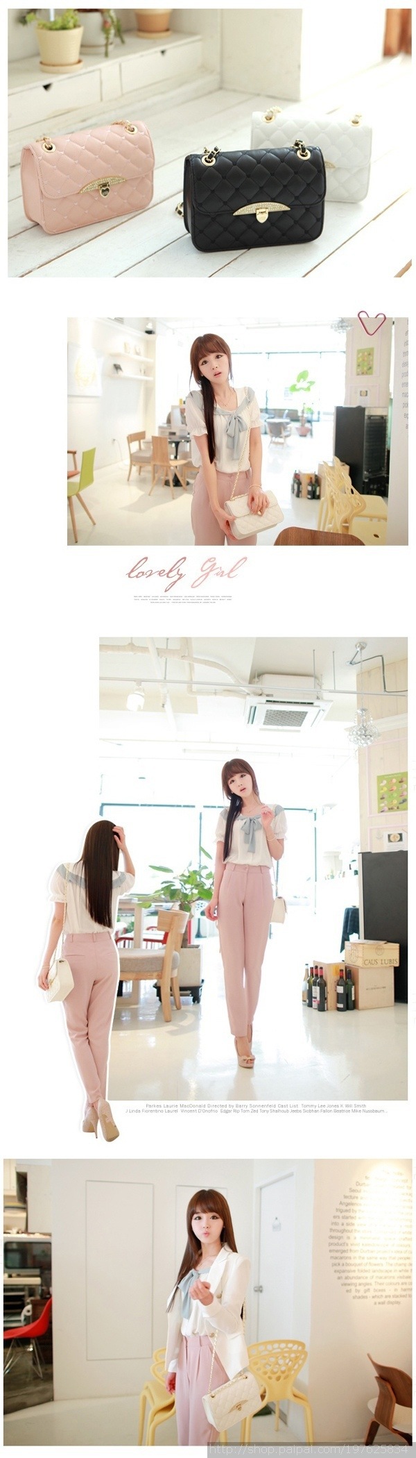 新款女包2013新品新款淑女甜美繡花鏈條菱格紋女包 OL單肩斜挎包