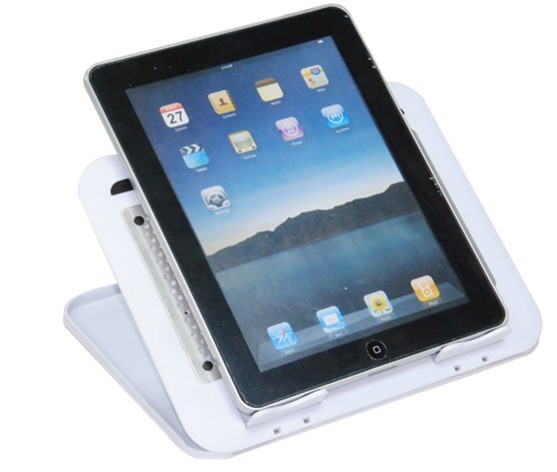 多角度人體工學設計,6個角度可調(diào)節(jié),讓你在使用IPAD電腦時,防止操作性傷害, 獨特防滑擋板設計,保證你的IPAD使用安全獨特的專為IPAD設計,給你帶來無限精彩。橫向、縱向放置IPAD,0—180度任意角度調(diào)整 小巧輕盈、方便便攜,折疊后輕松放入電腦包(隨身包)