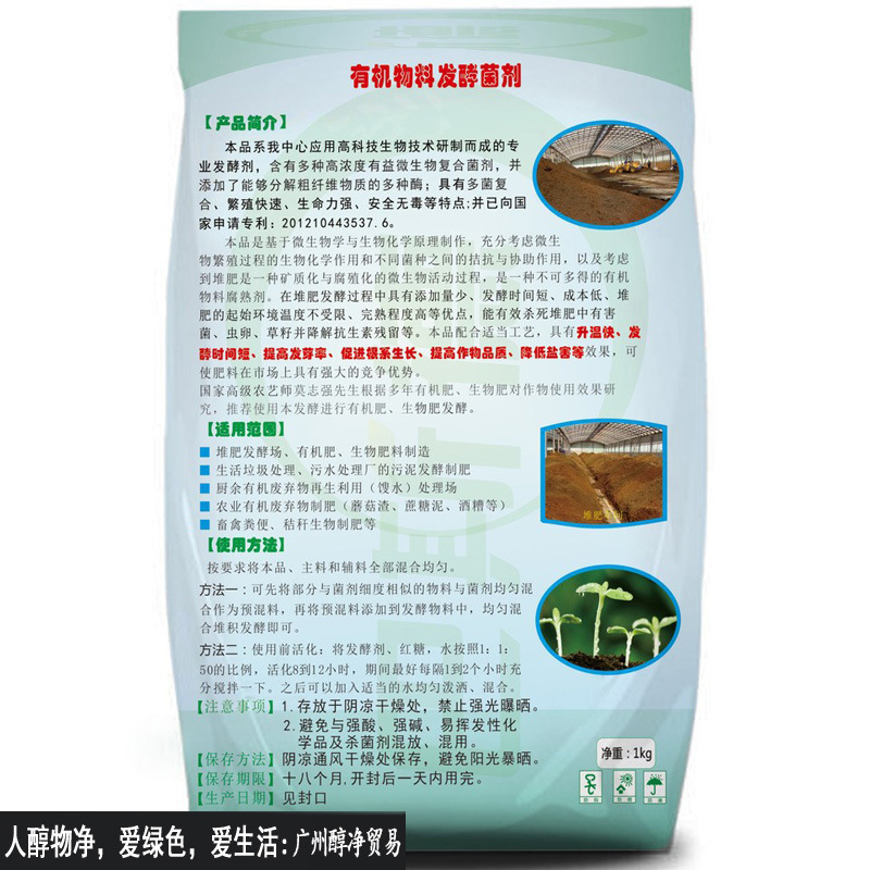 每千克腐熟劑(160元/Kg)可用于10-20噸有機(jī)物料發(fā)酵生產(chǎn);