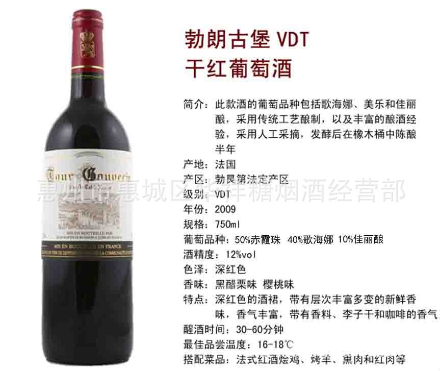 產(chǎn)品名稱:勃朗古堡干紅葡萄酒