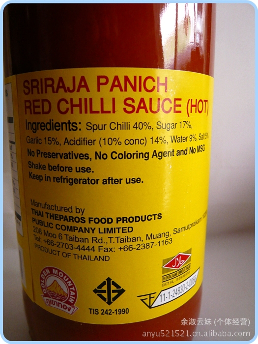 產(chǎn)品名稱:泰國(guó)進(jìn)口 是拉差辣椒醬(特辣、中辣)