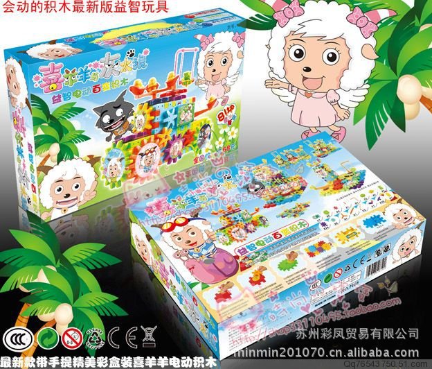 正品 喜羊羊與灰太狼電動積木百變積木81片 動感積木拼裝益智玩具