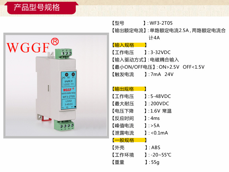 4.伍格固態(tài)繼電器重視每一個(gè)客人,每一個(gè)評價(jià).如果您滿意請給我們五分哦~我們無盡感激.如果出了問題,或者您有任何的不滿,請及時(shí)與我們聯(lián)系.彼此多一份理解與信任,請相信我們可以為您做得更好,更貼心.您的寶貴的意見就是我們需要改進(jìn)的地方,我們會(huì)虛心的接受您中肯的評價(jià),謝謝您的支持!