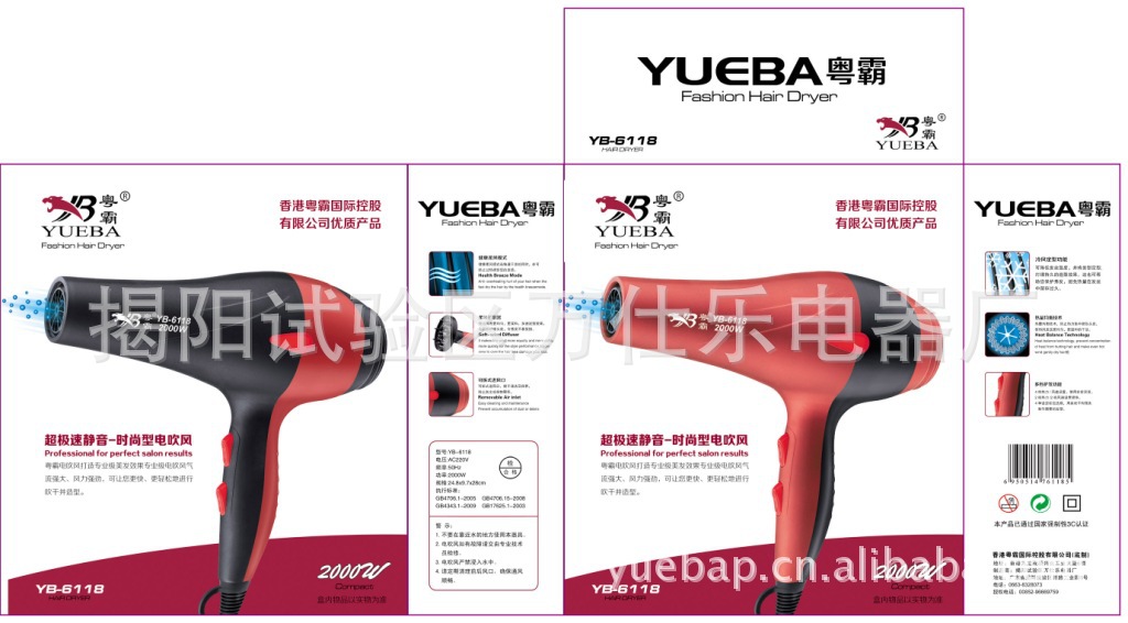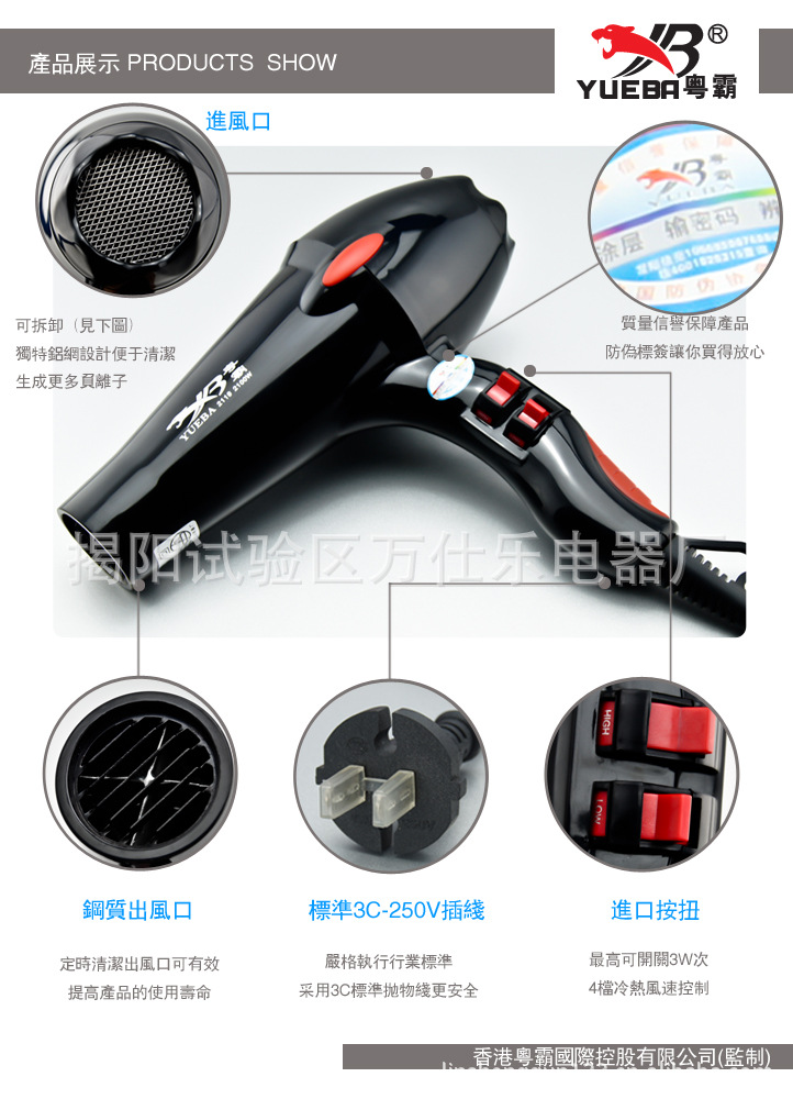 【品牌】:粵霸牌2200W大功率專(zhuān)業(yè)電吹風(fēng)