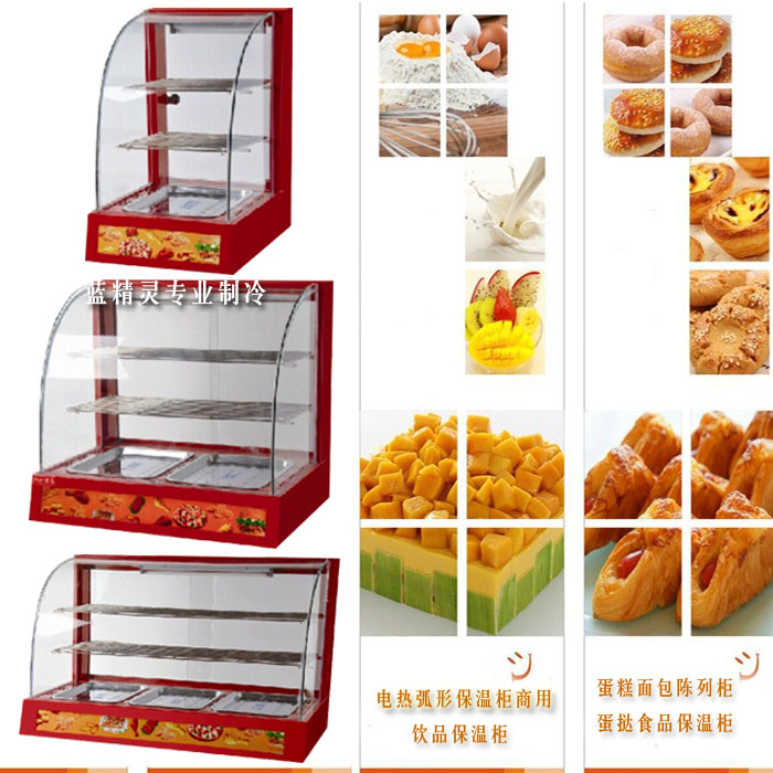 選用高效電熱管,柜體四周均為透明厚玻璃,保溫節(jié)能,并具有良好的展示效果,柜體底部可作燈箱廣告,采用新型電光源照明,更突出食品色澤。