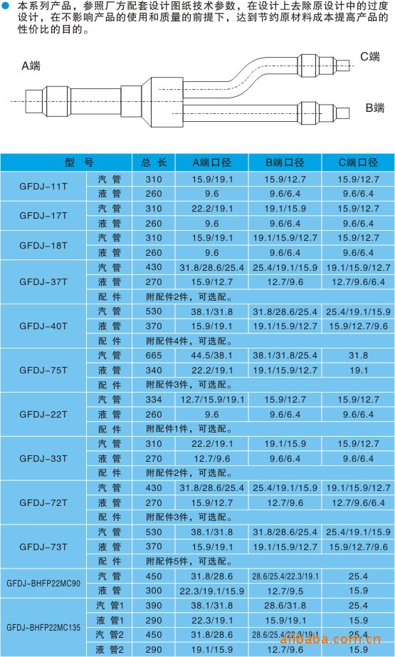 2、 產(chǎn)品接口尺寸多樣化,可接不同管徑的銅管。