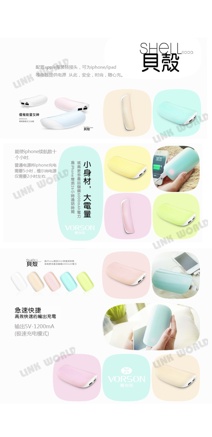 移動(dòng)電源 貝殼6000mah電源 移動(dòng)充電器 iphone/ipad充電器 維爾尚