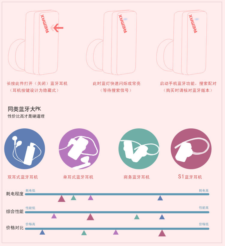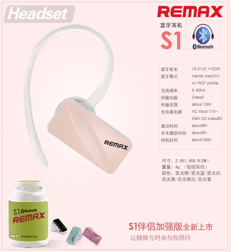 REMAX 藍(lán)牙 耳機(jī) 蘋果4代 HTC 單聲道手機(jī)通用 安卓/諾基亞可聽歌