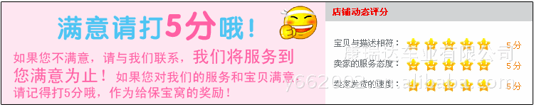 4.買家收到貨后請(qǐng)及時(shí)給出客觀公正的評(píng)價(jià),如有疑問(wèn),請(qǐng)先和我們的客服人員溝通,協(xié)調(diào)解決。如果隨意給出不公正的中評(píng)或者差評(píng),我們一律投訴到底。