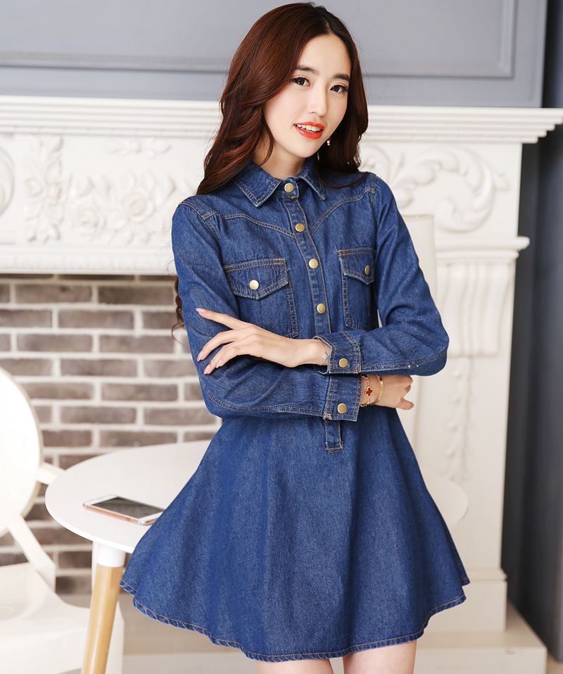 翻領(lǐng)、長(zhǎng)袖、A字闊擺裙