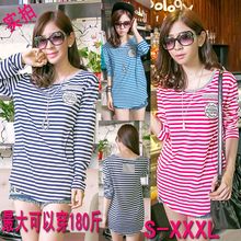 東大門女裝秋季寬松長(zhǎng)袖t恤中長(zhǎng)款條紋大碼女裝打底衫一件代發(fā)¥31.00