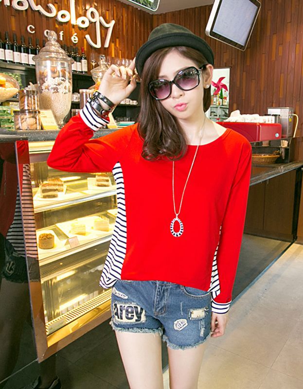 產(chǎn)品信息產(chǎn)品名稱:條紋拼接寬松上衣產(chǎn)品貨號(hào):863產(chǎn)品顏色:嫩綠色 紅色產(chǎn)品面料:棉產(chǎn)品參數(shù)厚度指數(shù)
